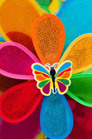 Children's windmill on a stick, colored background