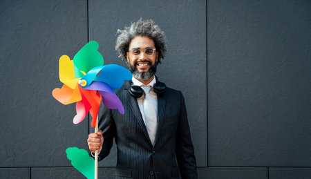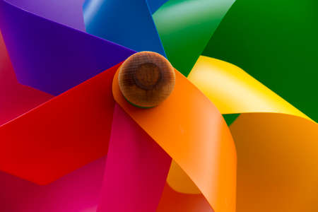 Rainbow wind toy on a clean background. Space for text