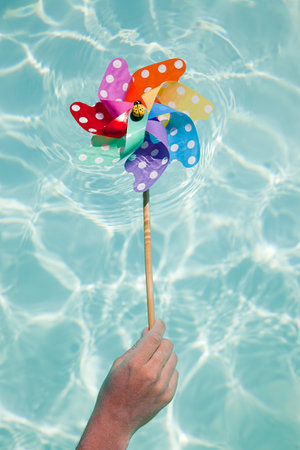 Person holding pinwheel in swimming pool