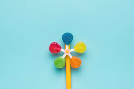 Children's windmills on a stick, colored background