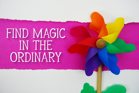 Find Magic in the Ordinary motivational and inspirational quotes message on pink background