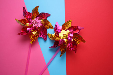 Rotating colorful pinwheels, childish windmills