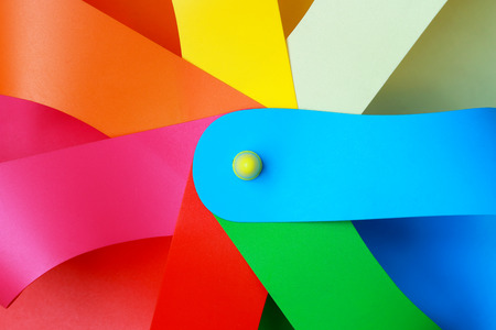 Colorful paper windmill on white textured background
