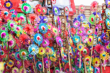 Colorful pin wheels for sale in gift shop close up