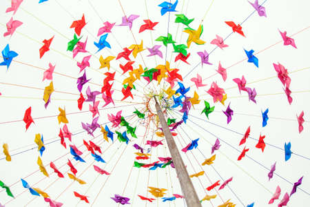 Colorful whizzer or windmill background on white with selective focus