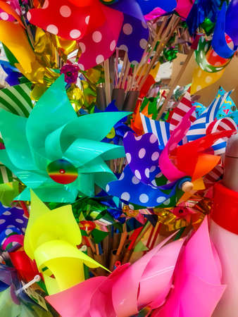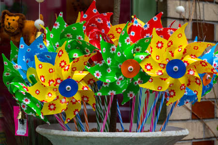 Rotating colorful pinwheels, childish windmills