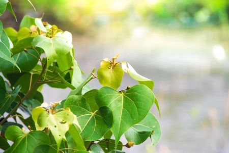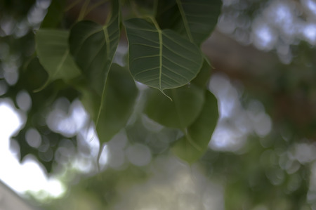 Pho or bodhi leave with sunlight and bokeh background.
