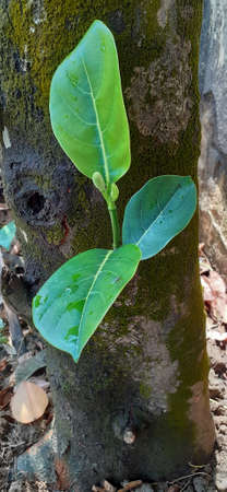 New leaves sprouting growing from the tree bark