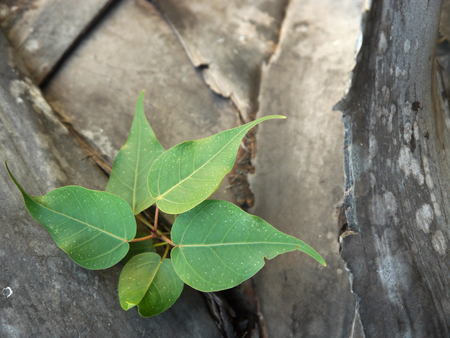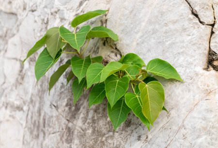 small bodhi tree growing in stone
