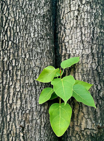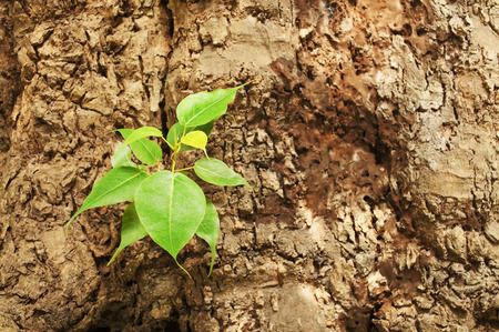 New green leaves born on old tree, brown textured