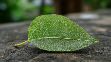 Delicate Green Leaf with Intricate Veins on Rough Concrete Surface