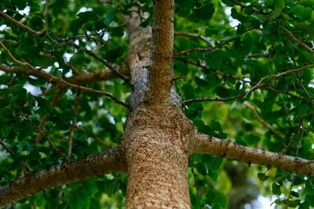 Ginkgo or ginkgo Biloba, maidenhair tree trunk in summer