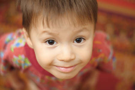 Chinese boy portrait looking up.