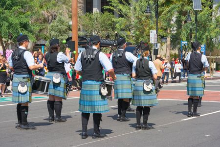 Los Angeles, California, USA - March 21, 2015 - Pasadena Scots Pipes & Drums Band at the Norooz Festival and Persian Parade new year celebration.