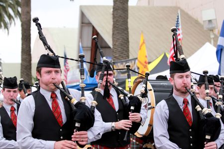 EDITORIAL ONLY VENTURA, CA, USA - October 11, 2009 - Bagpipe bands participating in a parade at the Ventura Seaside Highland Games October 11, 2009 in Ventura, CA