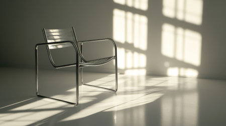 This photo captures a modern chair in a well-lit space, showcasing its minimalist design and elegant shadows, perfect for illustrating contemporary interior aesthetics and tranquility.