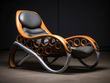 an empty modern chair, designed in the style of naturalistic light and shadow, showcases the essence of bauhaus functional design. with its silver and brown color scheme, this chair embodies the elegance of danish design. captured through the lens of a canonet ql17 giii, this photo exudes an atmospheric serenity, highlighting the eco-friendly craftsmanship of the piece. ai generated