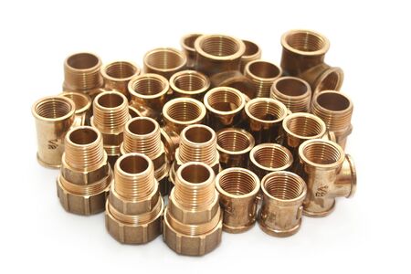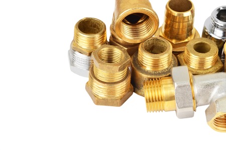 Set of brass fittings is often used to connect for gas and water installations. Fitting connecting pipes in plumbing
