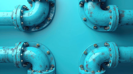 A close-up of a vibrant blue industrial piping system featuring a secure bolted flange joint, highlighting precision engineering and sturdy design.