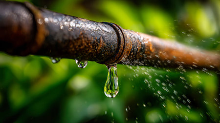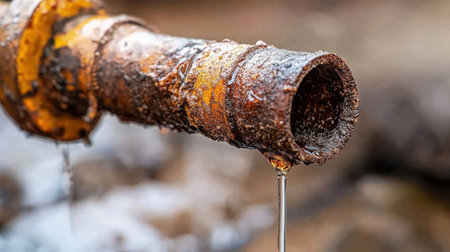 A close up of a rusty pipe with water dripping from it, AI