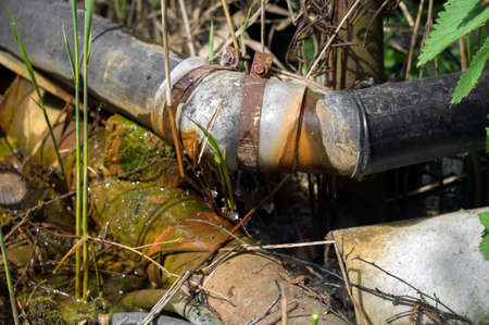 Leaking water pipe in poor condition and needs repair, outdoor closeup