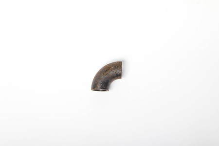 A rustic and textured rusty pipe fitting stands against a vibrant yellow background. Ideal for industrial-themed projects, creative works, and minimalist designs.