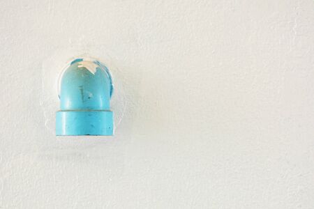Minimalism style, Blue water pipe on yellow wall texture background.