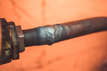 Joints of two pipes to fill the water in the tank close-up shot on a winter morning photo.