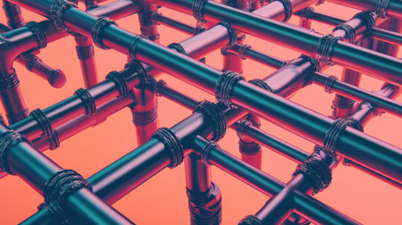 A striking abstract image showcasing interconnected pipes set against a vibrant background, highlighting modern industrial design and engineering principles.