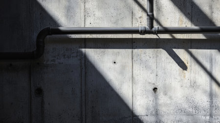 Industrial concrete wall with shadows and metal pipes, minimalist design concept
