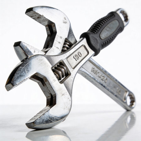 Adjustable wrench on white background