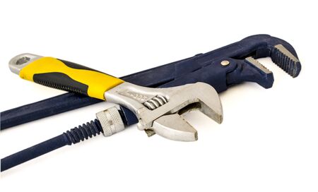 Wrench and spanner on a white background, close-up
