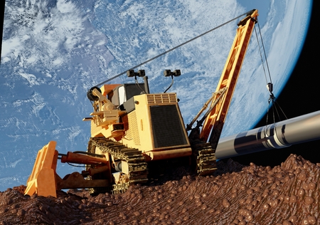 Construction machinery l on the backdrop of the planet..Elemen ts of this image furnished by NASA