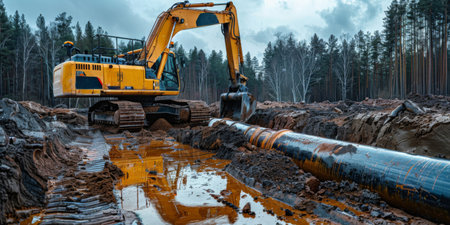 gas pipeline being constructed in remote, wilderness area, created with generative ai