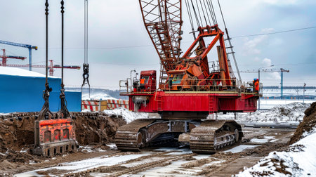 Close-up of industrial construction equipment. Industrial background with copy space.