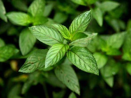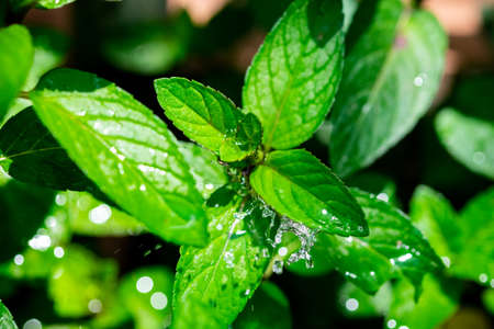 TAngerang, Indonesia-Mei 26 2022: Mint green leaves look fresh in the morning after drizzling last night.