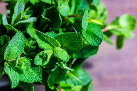 Organic food concept with fresh green leaves of mint plant
