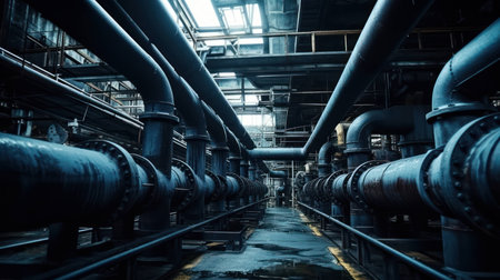 Interior of Piping as found inside of industrial power plant, Chemical industry plant.