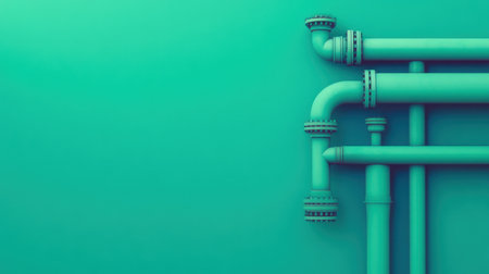 This image features a collection of teal pipes against a vibrant turquoise background, emphasizing modern engineering and abstract design elements in a stylish composition.