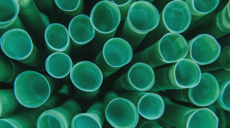 Background of the green plastic pipes in stacked