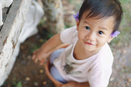A Vietnamese young little cute girl is laughing with decayed teeth