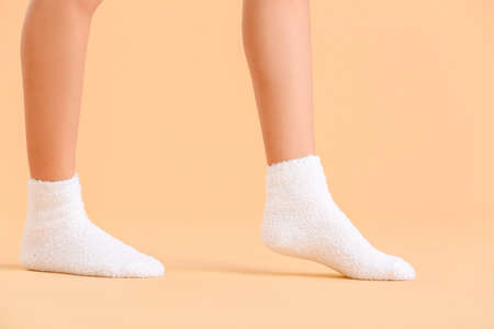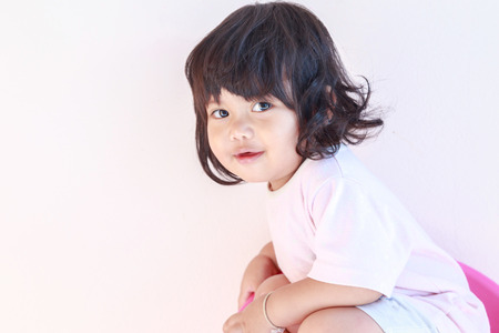 legs of small caucasian baby girl one year old sitting on the children's potty at home on the floor in day front view copy space