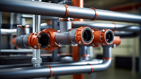 Various Pipes at an Industrial Facility extreme closeup. Generative AI