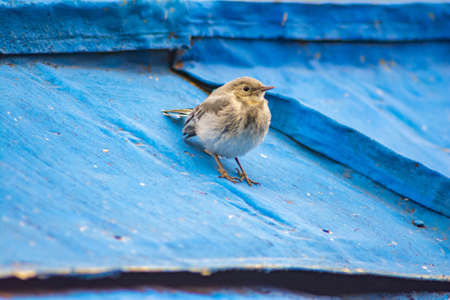 Little bird on a light background. Shallow depth of field.