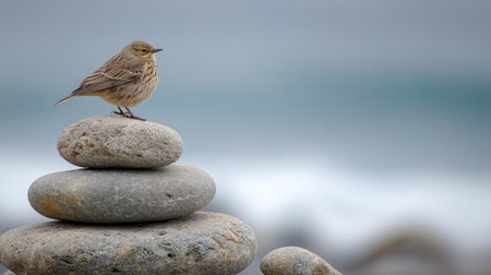 the american pipit, a migratory songbird, is beautifully captured in this high-quality passport-sized photo, showcasing its distinctive buff-brown plumage and subtle streaks, taken with a 50mm lens, highlighting the bird's intricate details and natural habitat. ai generated