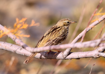 Tree Pipit (Anthus trivialis).Wild bird in a natural habitat.