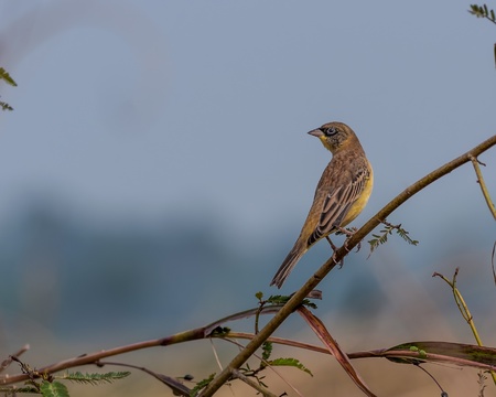 Eurasian pipit (Emberiza citrinella) perched on a branch