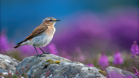 Meadow wheatear (Phoenicurus vulgaris) perched on a rock