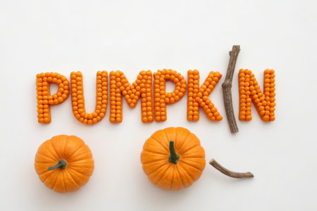 Pumpkin alphabet letters on a white background. Autumn composition.