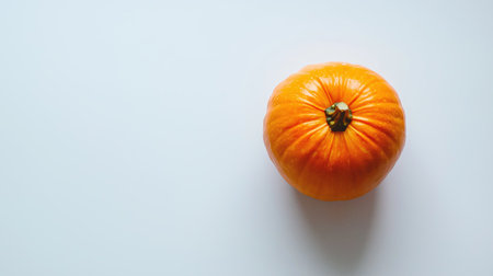 Overhead View of a Vibrant Orange Pumpkin on a White Background Plain